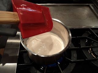 3. In a heavy-bottom sauce pan, add milk and vanilla, and bring to a boil.